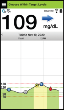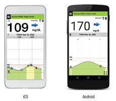The Eversense® App is a software application that runs on a mobile device (e.g., smartphone or tablet) and displays glucose data in a variety of ways. It also provides alerts based on the glucose settings you choose.