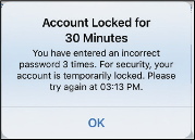 For security purposes if you enter an incorrect password three consecutive times in the mobile app, your account will be locked for 30 minutes. During this time, you will not have access to your CGM data on the mobile app.