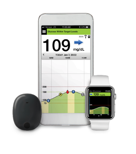 The Eversense® E3 CGM system consists of three main components: a glucose sensor, a Smart Transmitter, and a Mobile Medical Application to read the glucose data.